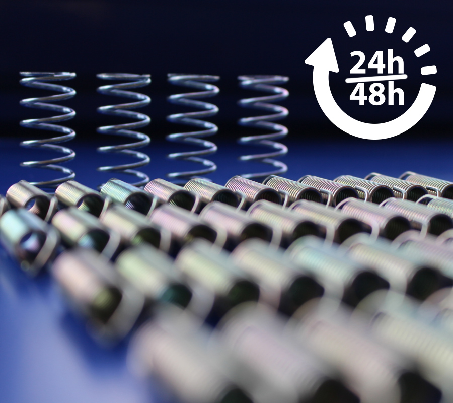 Parce que certains projets ne peuvent attendre, nous avons développé une organisation capable de répondre aux situations les plus urgentes. Dès la réception de vos éléments techniques – qu’il s’agisse d’un plan, d’un descriptif détaillé ou d’un modèle physique – nos équipes sont en mesure de lancer immédiatement la fabrication. Grâce à notre parc de machines numériques et à notre logistique optimisée, nous pouvons assurer la production et la livraison de vos ressorts en seulement 24 heures.